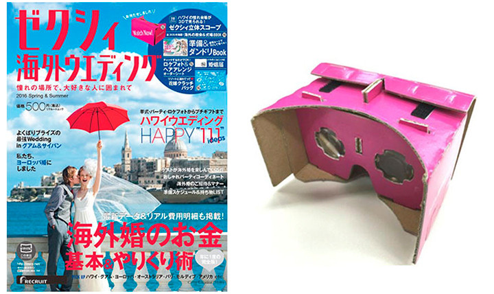 こちらは「ゼクシィ」のムック版の付録として提供されたVRスコープです。スマホにセットすることでハワイ・オアフ島の5つのウェディング会場の下見できます。