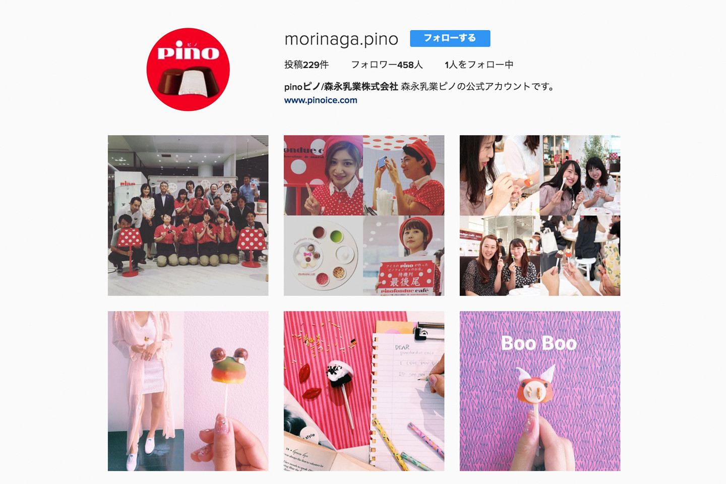 2015年、森永乳業は東京・表参道に「ピノフォンデュカフェ」を期間限定オープン。来場者それぞれが「Pino」をオリジナルでデコレーショションできるイベントと共にフォトキャンペーンを開催し、カフェの様子や投稿された写真をインスタグラムに掲載しました。