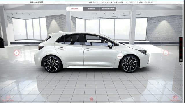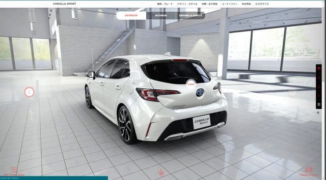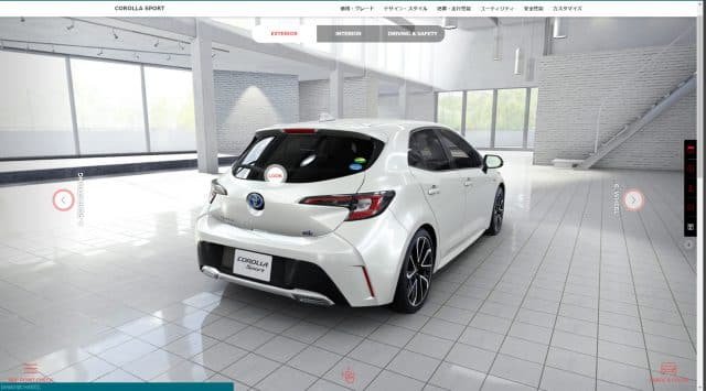 360度、あらゆる角度からCOROLLA SPORTをチェックできるショールーム用コンテンツ。