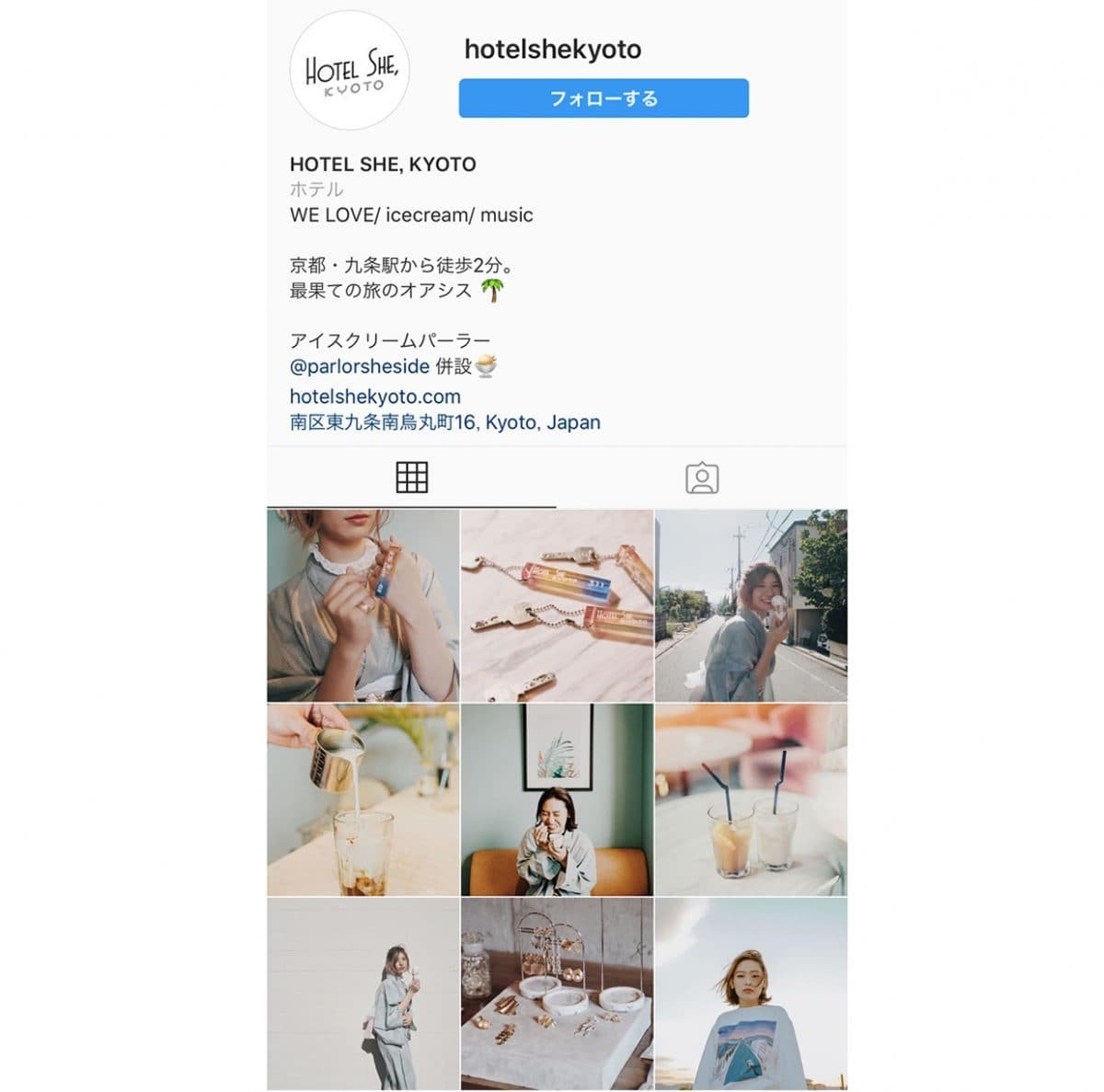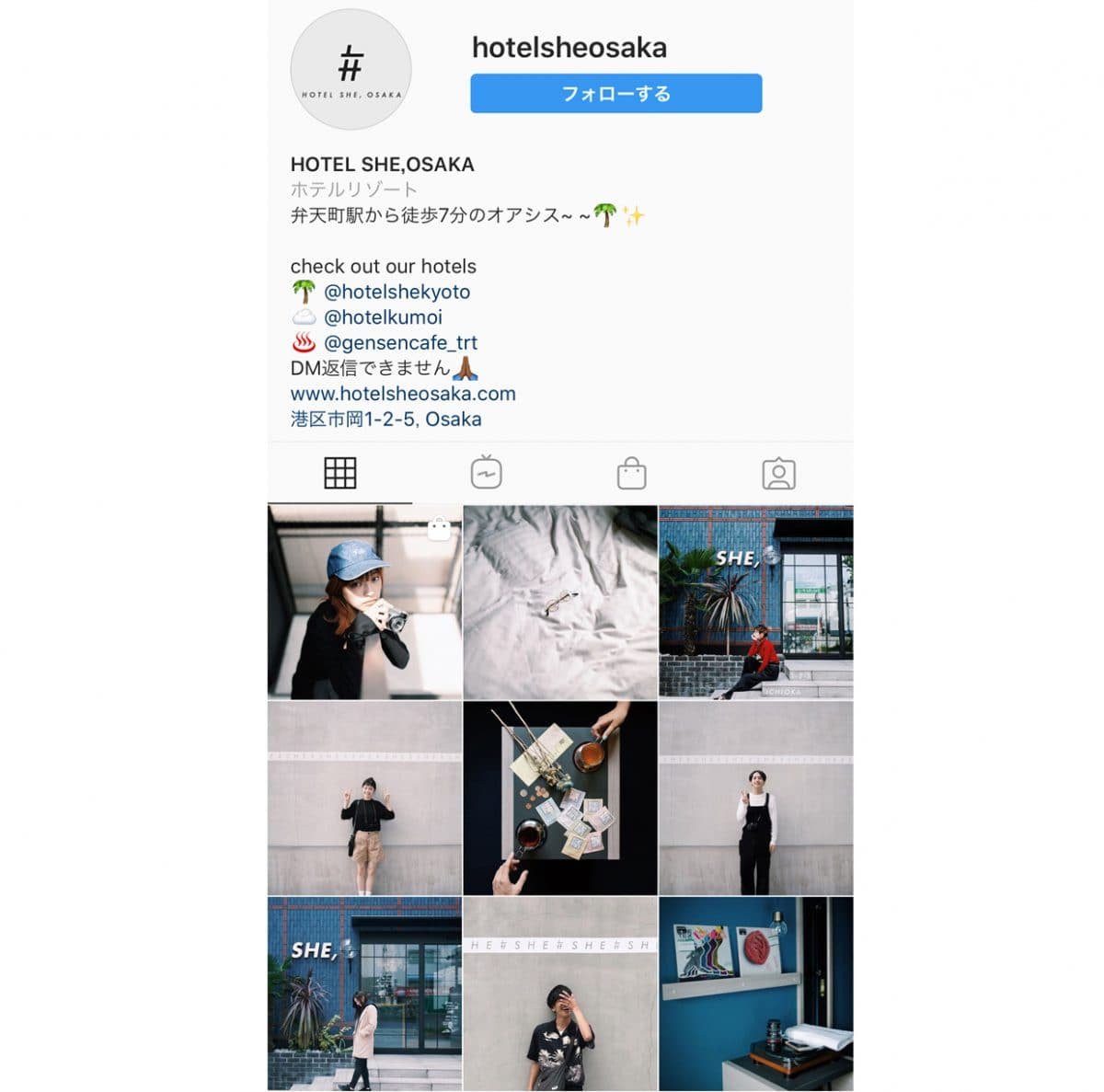 「HOTEL SHE,」は、L&Gグローバルサービスが運営するホテルブランド。大阪と京都にホテルを構えています。「HOTEL SHE,」のアカウントは、世界観の作り込みもさることながら、特筆すべきはUGCが多く投稿されていること。日本のみならず、海外からの旅行客も、「HOTEL SHE,」のアカウントをタグ付けしたり、スポットを設定したりして、ホテルで撮影した写真を投稿しています。