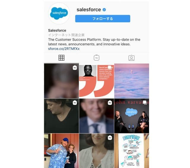 顧客管理システムを中心としたクラウドサービスを提供するセールスフォースも、Instagramを活用しているBtoB企業です。コーポレートカラーのスカイブルーを取り入れた投稿が多く、さりげなく企業を印象付ける工夫がされています。