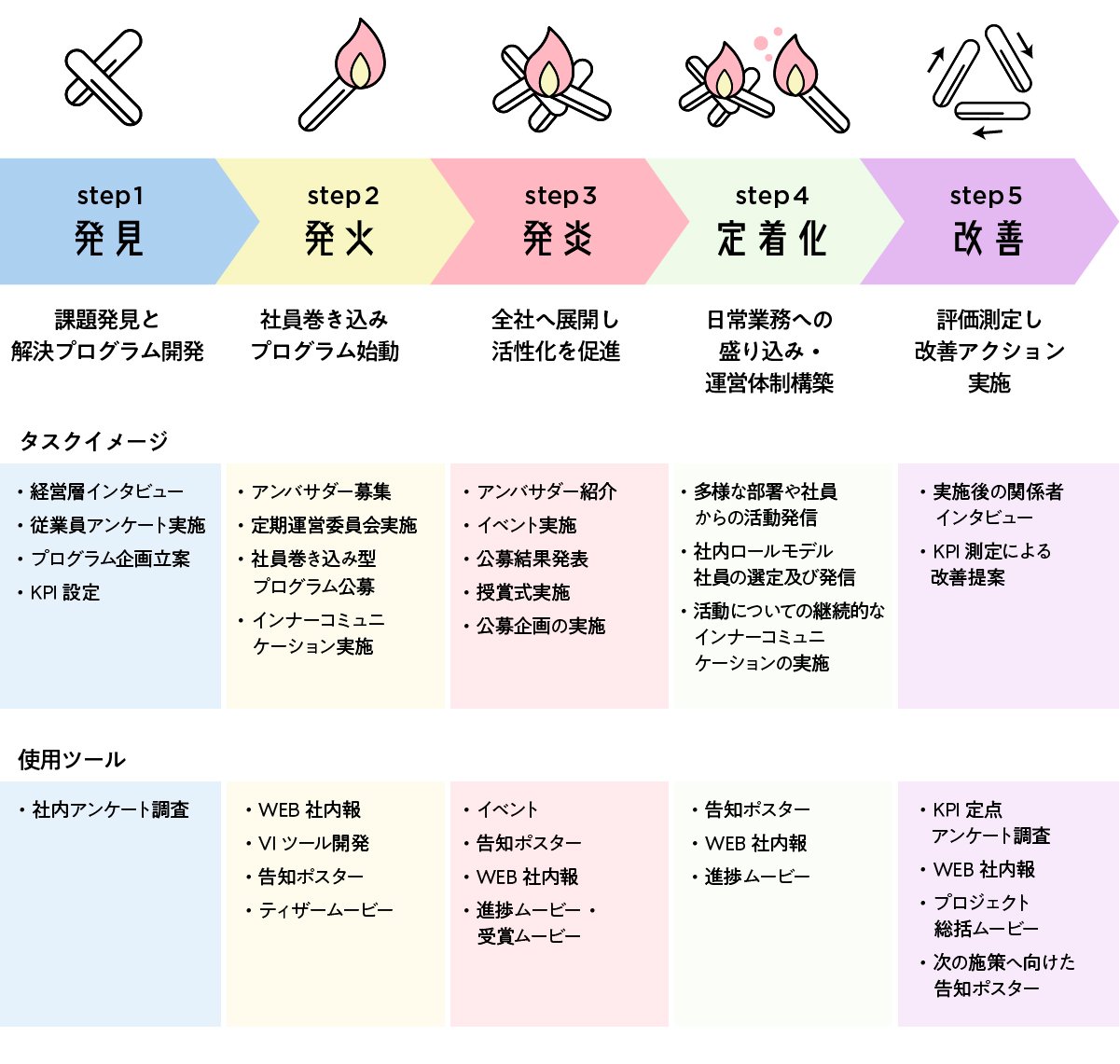 ●ステップ3:【発炎】全社へ展開し、活性化を促進