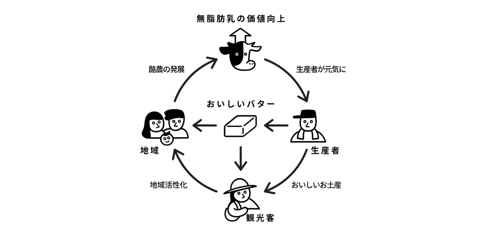 お菓子をつくるために地域に雇用が生まれ、買ってくれる人はトレーサビリティのある商品をお土産として渡すことができる。「バターのいとこ」は生産者も観光客も地域の人も、みんなが喜ぶ「三方良し」の構造が広がっていくことを目指しています。