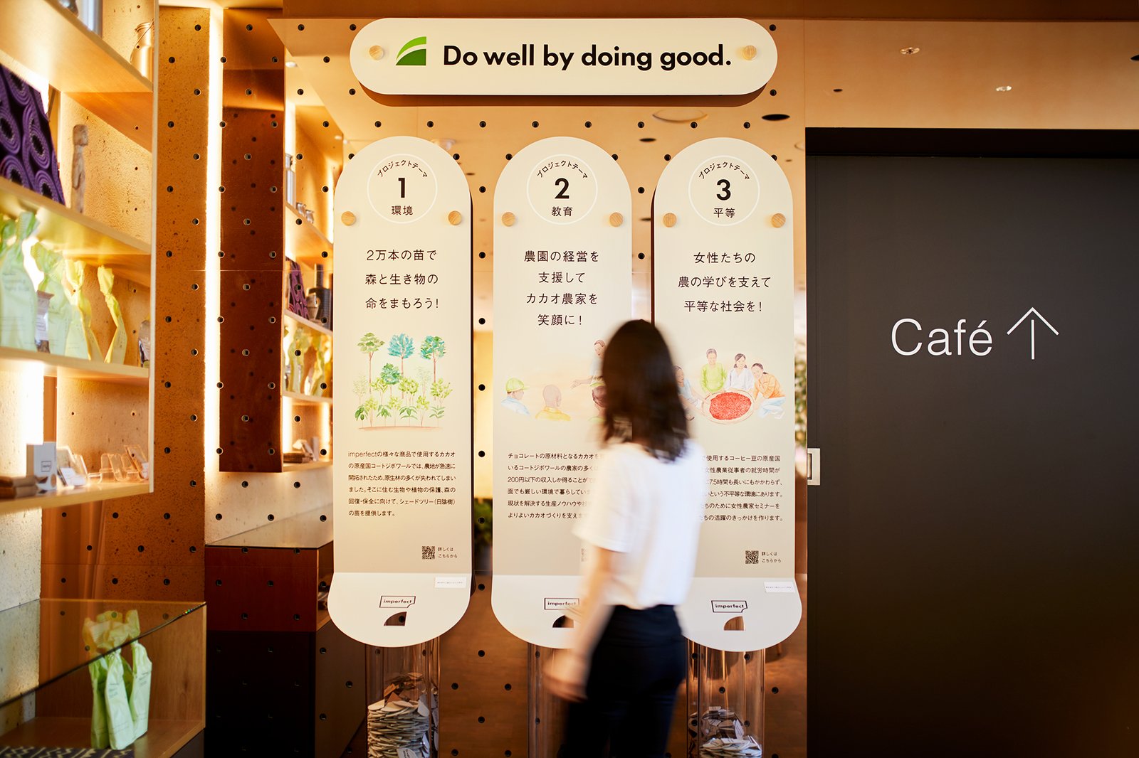 「imperfect表参道」では、食や農業を取り巻くさまざまな社会課題を世界の不完全(imperfect)の一つと捉え、たとえ不完全な取り組みでも、「できることから世界と社会をよくしていこう」という想いで、世界中のサステナブルな生産者との関係性を意識した食品を販売しています。