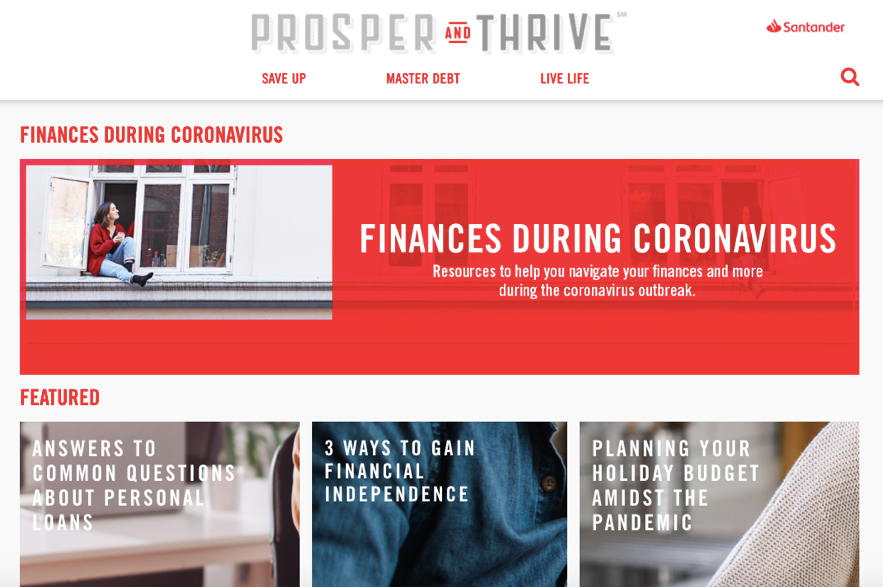 Santander Bankは、コンテンツを活用して見込み客にアプローチすることで、多くの成功を収めてきました。同行の“Prosper and Thrive”というコンテンツハブは、2016年当時にミレニアル世代を意識して制作されたもので、瞬く間に100万回以上のサイト訪問と20万件のソーシャルエンゲージメントを獲得しました。