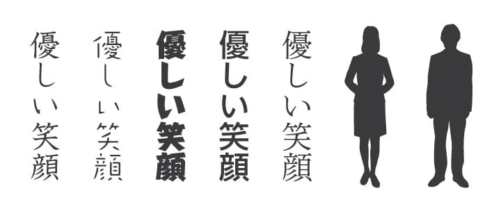 資料や企画書を作る時、使い慣れている書体を使ってしまい、伝わるかどうかという基準で書体選びをしている方は多くないかもしれません。しかし、「優しい笑顔」の例文でもわかるように、書体が違うだけで印象は変わります。いかに、人間という生き物が想像力豊かか、ということでもあるかもしれませんね。文字で伝えるというのは、ただでさえ難しいことです。しかし、相手に伝わるように配慮した資料の作り方を心がければ、「文字だからこそ伝わる」というものができるでしょう。「書体」という心くばりをほんのひと匙、ぜひプラスしてみてください。