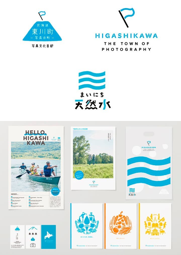 ▼東川町のロゴ、名刺、リーフレットなど、制作物のイメージを統一