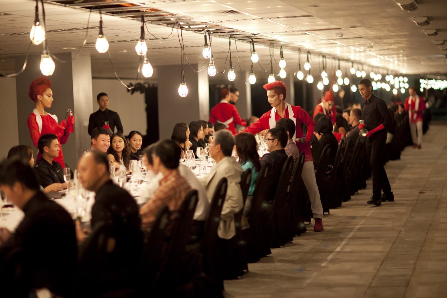 シンガポールで開催したゲリラレストラン「Guerrilla restaurant 111 Tongues Singapore」 2011年6月23〜25日(撮影 : Caesar Production)高層ビルが立ち並ぶシンガポール中心地。ビル16 階の空きスペースで111 名のゲストのために3 日間だけ開催されたゲリラレストラン。