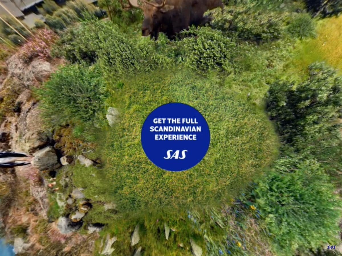 SASことスカンジナビア航空がYouTubeで配信している“The Full Scandinavian Experience in 360!”(スカンジナビアの360度フル体験)<https://youtu.be/NZ8kEiUPf48>もその1つで、スカンジナビア3国(デンマーク、ノルウェー、スウェーデン)の風景をコンパクトな360度ビューに収めて、VRゴーグルや手持ちしたスマートフォンで周囲を見回すようにして楽しむ仕掛けとなっている。