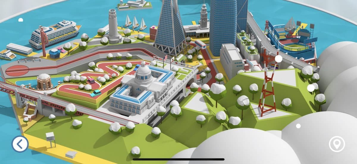 ズーム(ARモードの場合には、近づくだけでOK)してみると、この街のさまざまな名所が、巧みに1つにまとめられていることがわかる。