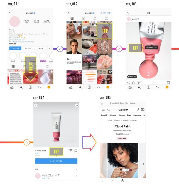Instagramのいいところは、購買行動につながりやすいよう設計されている点。Instagramに備わっている機能を使えば、検索から購買までの導線が明確になります。