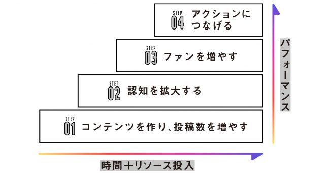 ここでは、企業やブランドのInstagram運用を4つのステップで考えていきます。今回はステップ4「アクションにつなげる」について解説します。