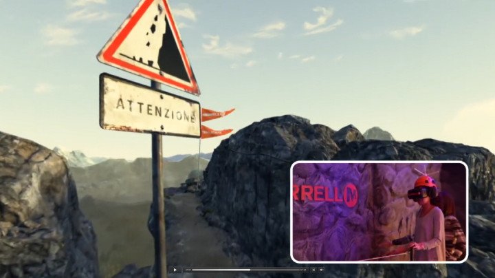 ユーザーはMERELLのシューズを履き、Oculus Riftを装着して、高山の自然環境を再現したセットでVRのトレッキングを体験できます。セット中には断崖絶壁に掛けられた吊り橋なども再現されていて、ユーザーはスリルを味わいながらリスクを伴うことなく、過酷な自然環境を味わうことができます。