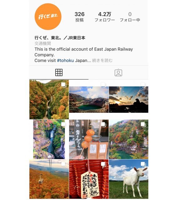 このアカウントの特徴は、すべての写真が一般のユーザー投稿からの転載だというところです。アカウントを立ち上げた当初から、東北が好きな人たちに#行くぜ東北というハッシュタグを付けて投稿してくださいとお願いし続けていて、フォロワーが徐々に増えている。Instagramでユーザーをうまく巻き込んで、文化を作ることに成功しています。