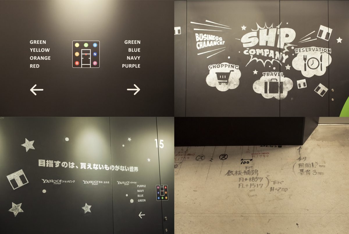 3つ目は、「ハッカブル(未完成)」。インターネットサービスは常に未完成で、常に改善されていくことと同様、自分達の手で作り上げていく、そんなオフィスを目指したのだそう。18階の床面が工事中のような雰囲気だったのは、「あえて」のこと。実際に工事の際に寸法の目安として書き込まれた数字などは、今でもそのまま残されています。