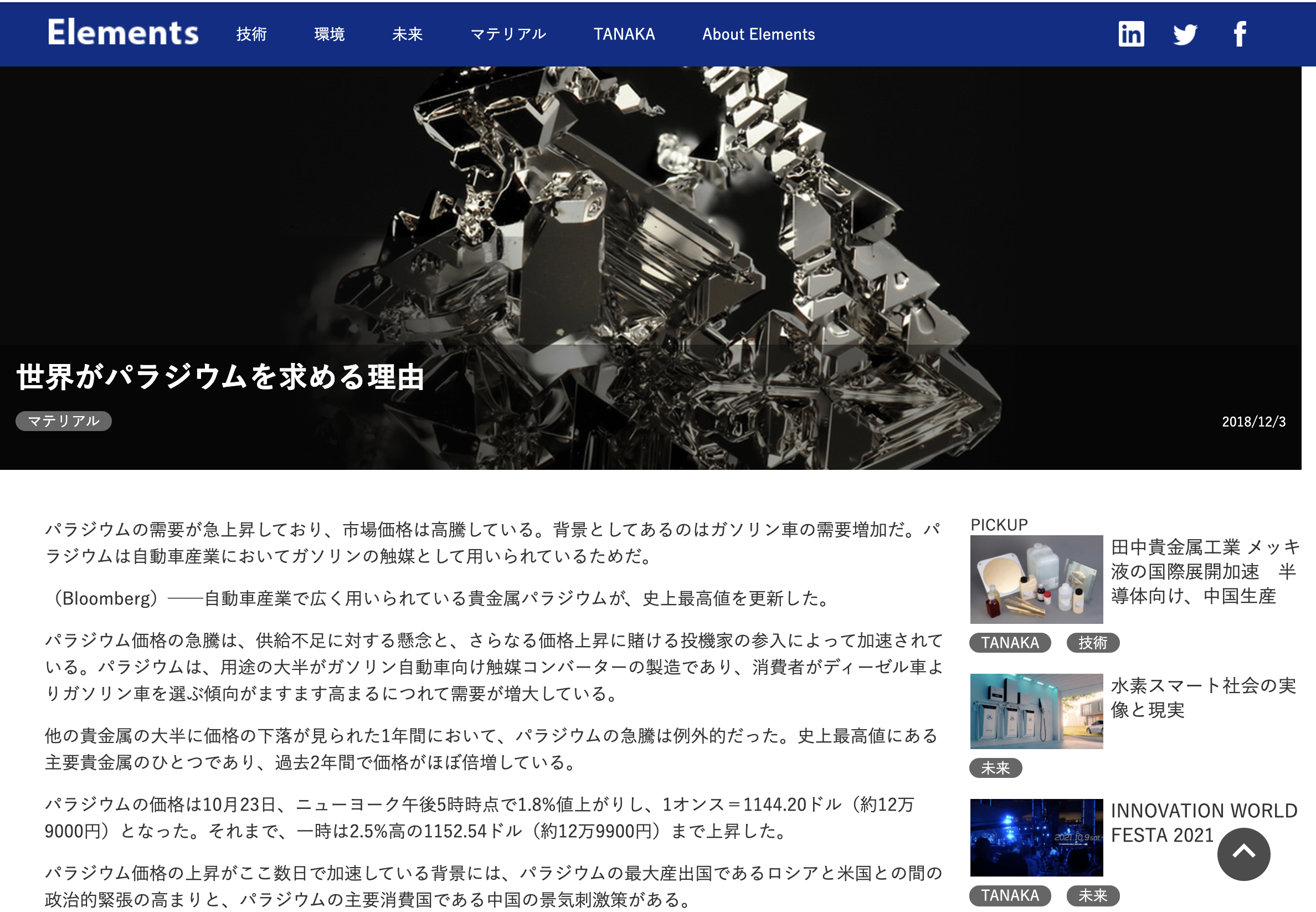 サイトのリニューアル後、最初のキラーコンテンツとなったパラジウムをテーマにした記事