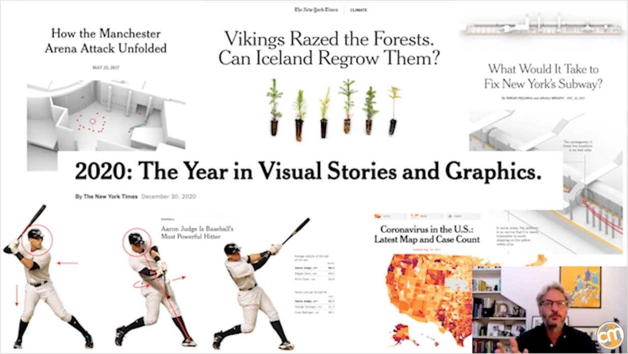 一方で、ペーパーメディアとして長い歴史を持ち、保守的と思われてきた新聞業界でも、脱グーテンベルク時代への試みが行われている。たとえば、ニューヨークタイムズ紙のオンライン版でも、見せ方を工夫し、ビジュアル重視のストーリーテリングを採り入れることで、よりわかりやすく、印象に残る誌面作りを推進している。