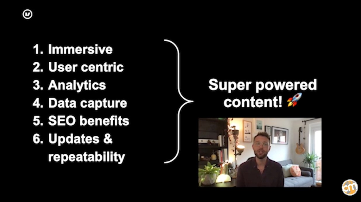 しかし、最先端のデジタル技術を投入することで、コンテンツはよりインタラクティブなものとなり、見た目が魅力的になるだけでなく、エンゲージメントも一層深いものにしていくことが可能となる。ウェルチ氏は、以下6つの要素を備えたインタラクティブなコンテンツは、優れたコンバージョン率につながると解説した。