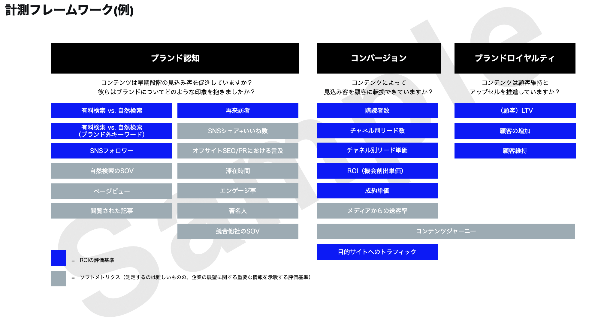 まず、自社ビジネスのターゲット層のニーズや興味の調査結果に基づいて作られたコンテンツ自体が、ブランドの醸成に貢献する。優れたコンテンツはSNSなどを通じてターゲット層の話題の一部として広がり、それに伴ってブランドの露出も増えていく。そして、フォロワーが増えれば、その数字を成果として社内に提示できる。