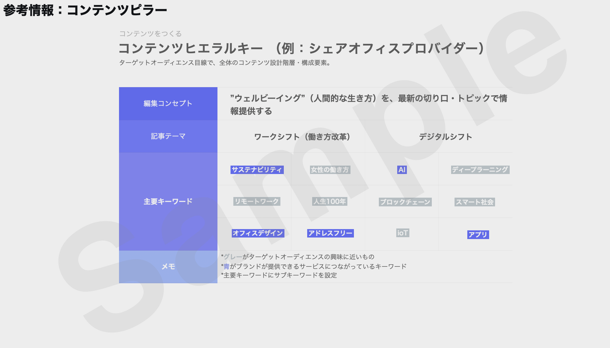 「フレームワークを作り上げる中で、まず誰に読んで欲しいのか、どういう記事にしていきたいかとかいう『編集コンセプト』を一緒に考えていきました。私たちが運営するサイトは材料を提供するBtoB事業ですが、新規事業のきっかけとなるよう業種は絞らず、一般企業の製品開発部門の方や経営者の方などに記事を届けたいと考えていました。コンテンツのテーマについては、貴金属メーカーなので貴金属に関する記事や、貴金属に関わる新技術などを取り上げていこうといったことを議論しました」(小柴さん)