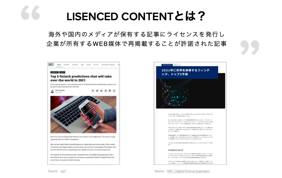 国内外のメディアが制作するコンテンツをオウンドメディアに掲載できる「ライセンスドコンテンツ」を活用することで、時間とコストを抑えて質が高く、一定量のコンテンツを掲載することができます。またグローバルに向け情報発信を行う協和キリンにとって、英語コンテンツが豊富にあることもメリットでした。