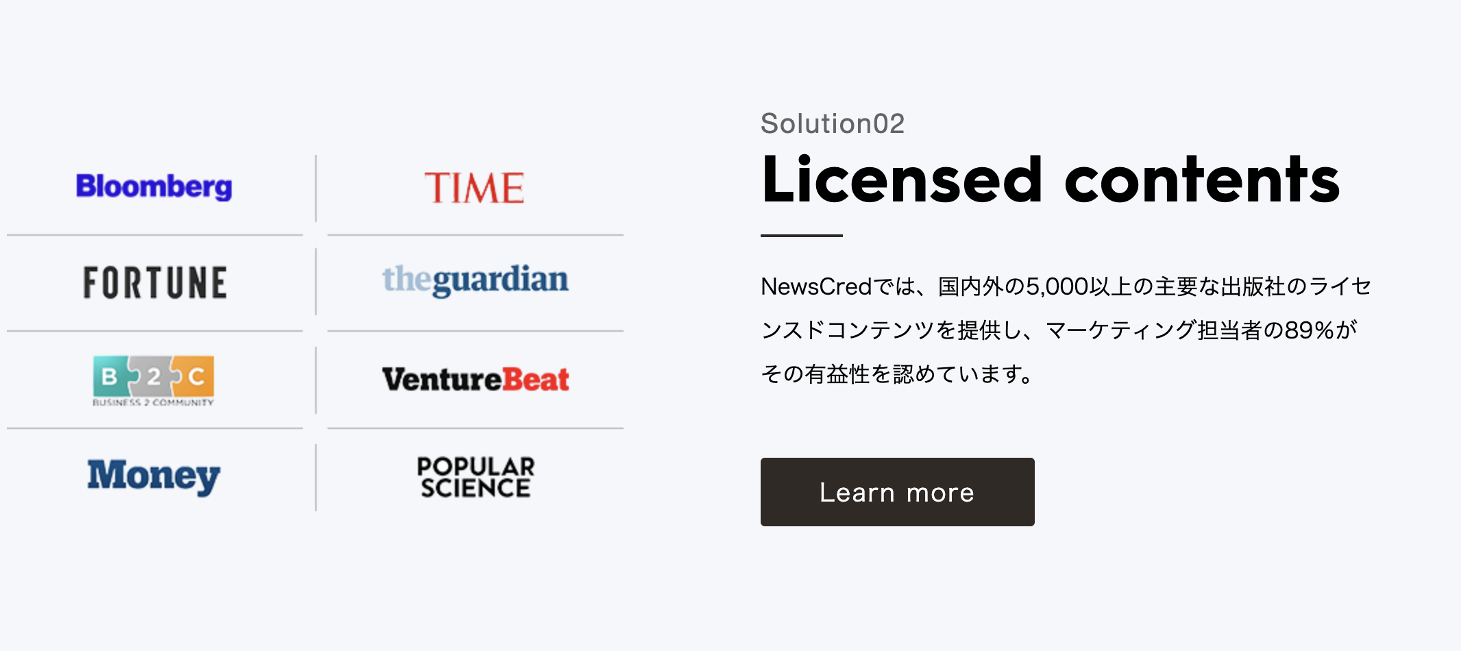 効果測定、ライセンスドコンテンツ、マーケティング支援などのサービスを提供する「NewsCred」。